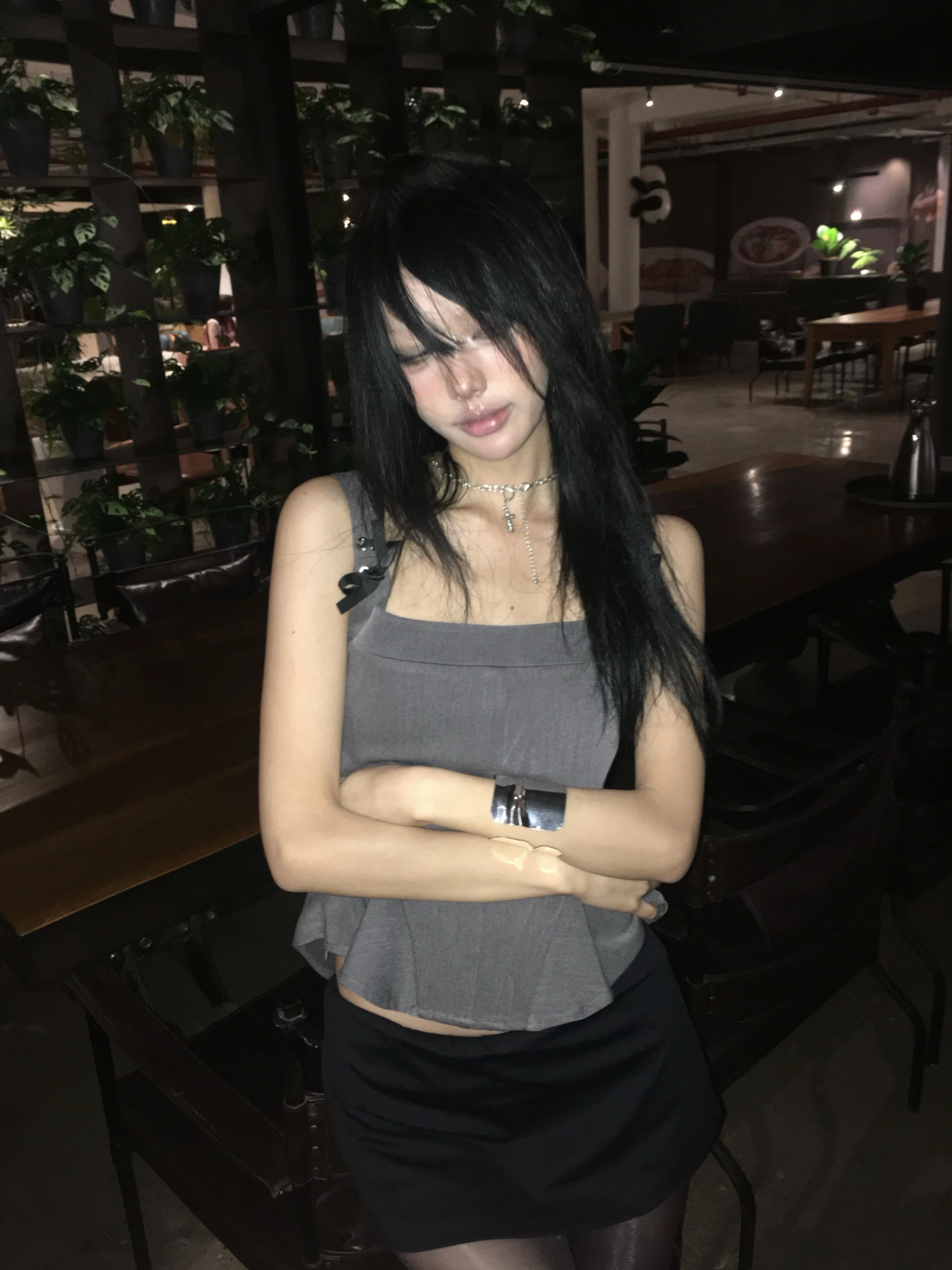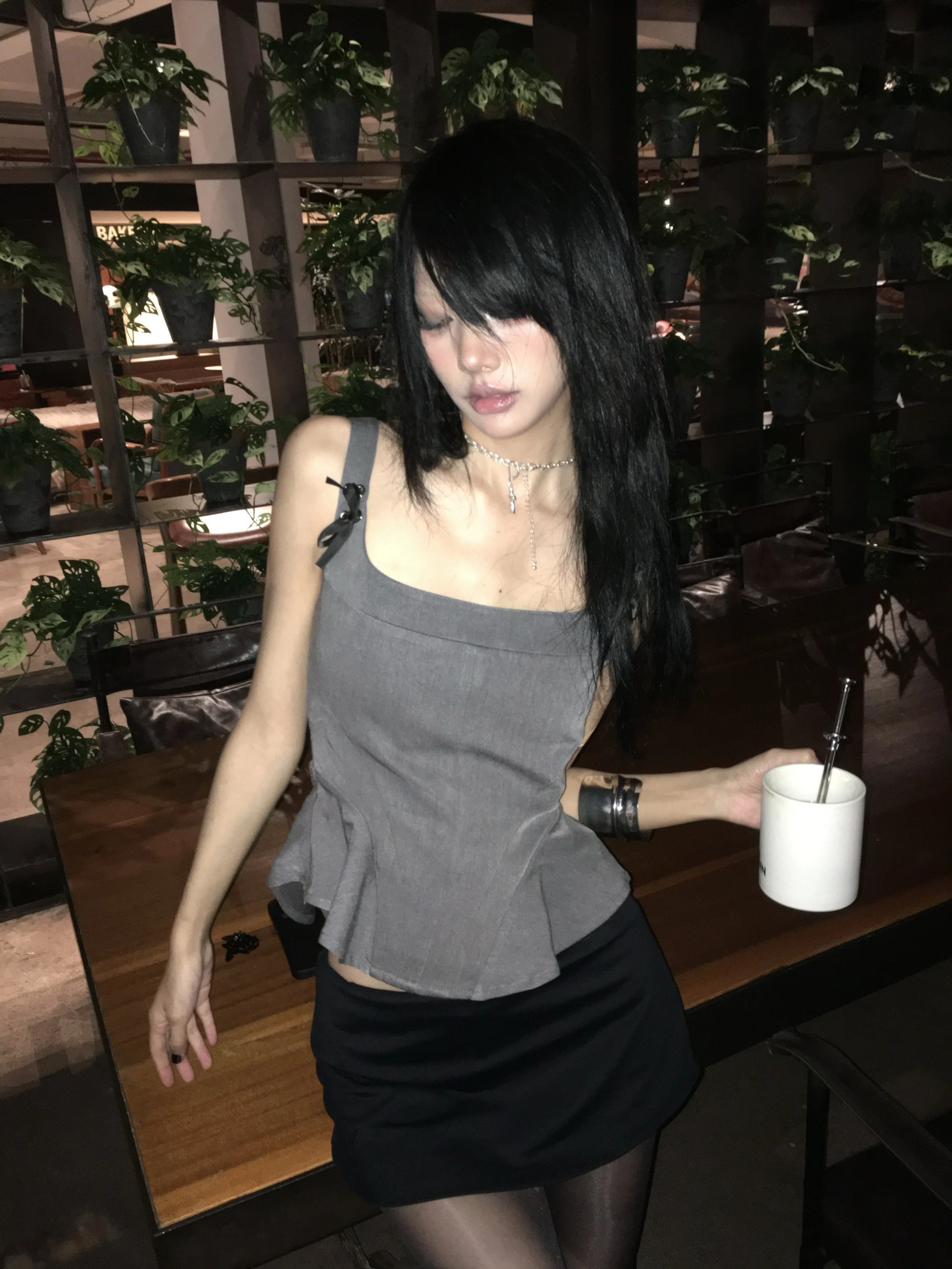 peplum tank top with ribbon strap details